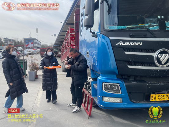 “金麥穗”服務(wù)隊(duì)還特別為外地大貨車司機(jī)送上了暖心湯圓。這些大貨車司機(jī)常年奔波在外,很難和家人一起過節(jié)。當(dāng)他們收到這份特別的節(jié)禮時(shí),眼中滿是感動(dòng)。一位司機(jī)師傅說:“雖然不能回家,但在這里感受到了家的溫暖,更感受到了千年古都西安人民的熱情,謝謝糧油市場對我們的關(guān)心。”
